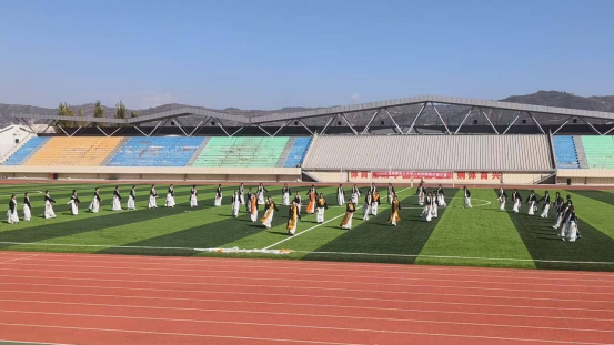 比赛现场,我院参赛队员身着色彩鲜明的服饰,伴随着悠扬激昂的旋律登场。他们的舞姿兼具柔美与豪迈,抬手投足间尽显锅庄舞的民族韵味,时而如雄鹰展翅般舒展洒脱,时而如流水奔涌般灵动连贯。队列编排精妙,从同心圆到半月包的队形变换行云流水,46名队员动作整齐划一,步伐节奏精准协调,每一个起落转身都凝聚着默契与力量,将对民族文化的热爱融入舞姿之中,赢得现场评委与观众的阵阵掌声。