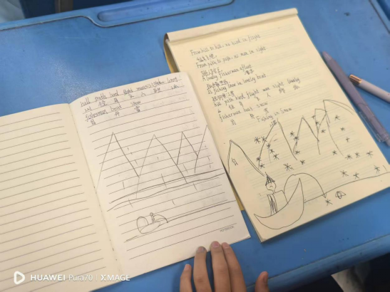 2. 语言学习:将英语诗句拆解为“核心名词+动作短语”(如“fisherman”“lonely”),带领学生跟读并标注重读词,通过“拍手打节奏”的方式强化韵律记忆。