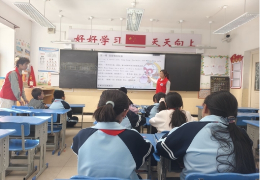 为弘扬中华优秀传统文化,提升小学生英语学习兴趣与综合素养,20251031日,外国语学院本科生党支部志愿者走进西宁市城北区泉湾小学,开展 “语泉相助,荧光相行” 西游记》英语话剧教学志愿服务活动。本次活动以经典剧目《三打白骨精》英语课本剧为核心围绕英语表达能力、文化理解力与团队协作能力,通过视频观赏、角色讲解与情景表演等教学方式帮助小学生在轻松愉快的氛围中学习英语表达,理解故事中的角色性格与情节冲突提升语言运用能力与文化理解力。