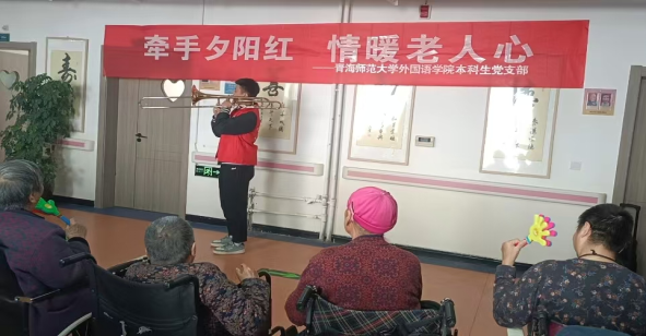 温情相伴,岁月如歌。“牵手夕阳红,情暖老人心” 志愿服务活动不仅是一次爱心之旅,更是一次成长之旅、传承之旅。它让我们看到,青年一代用实际行动诠释着社会责任与担当,用青春与热血温暖着这个社会。未来,青海师范大学外国语学院本科生党支部与音乐学院团总支将继续秉持志愿服务精神,常态化开展尊老爱老志愿服务活动,不断创新活动形式,丰富活动内容,为老人们带去更多元化的关爱与陪伴。相信在未来的日子里,会有更多的人加入志愿服务行列,用爱心传递温暖,用行动诠释担当,让尊老爱老之花在社会各个角落绚丽绽放,让温情与美好永远伴随在每一位老人身边。