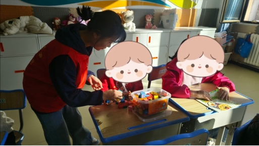 1.具体内容:本次活动由陈瑞鑫,蒋腾,卫一然,马志萍四名同学参加。四位同学被分别分入大,中,小班配合老师上课,根据机构授课老师的上课内容,志愿者进行相应的辅助工作,让自闭症儿童们更好地融入课堂。