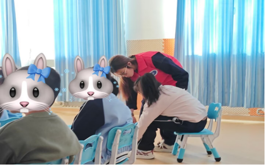 中午的志愿时光分为两节课程,第一节游戏课上,我先协助老师组装活动道具,看着零散的零件在手中变成孩子们能玩耍的器具,心里满是期待。过程中,我还需要照看个别情绪敏感的孩子,起初我有些手足无措,怕自己的举动惊扰到他们,便学着放慢动作、放轻声音,用温和的眼神回应他们的目光,慢慢的,孩子不再抗拒我的靠近,那一刻我懂得,面对这些孩子,耐心是最基础也最珍贵的态度。